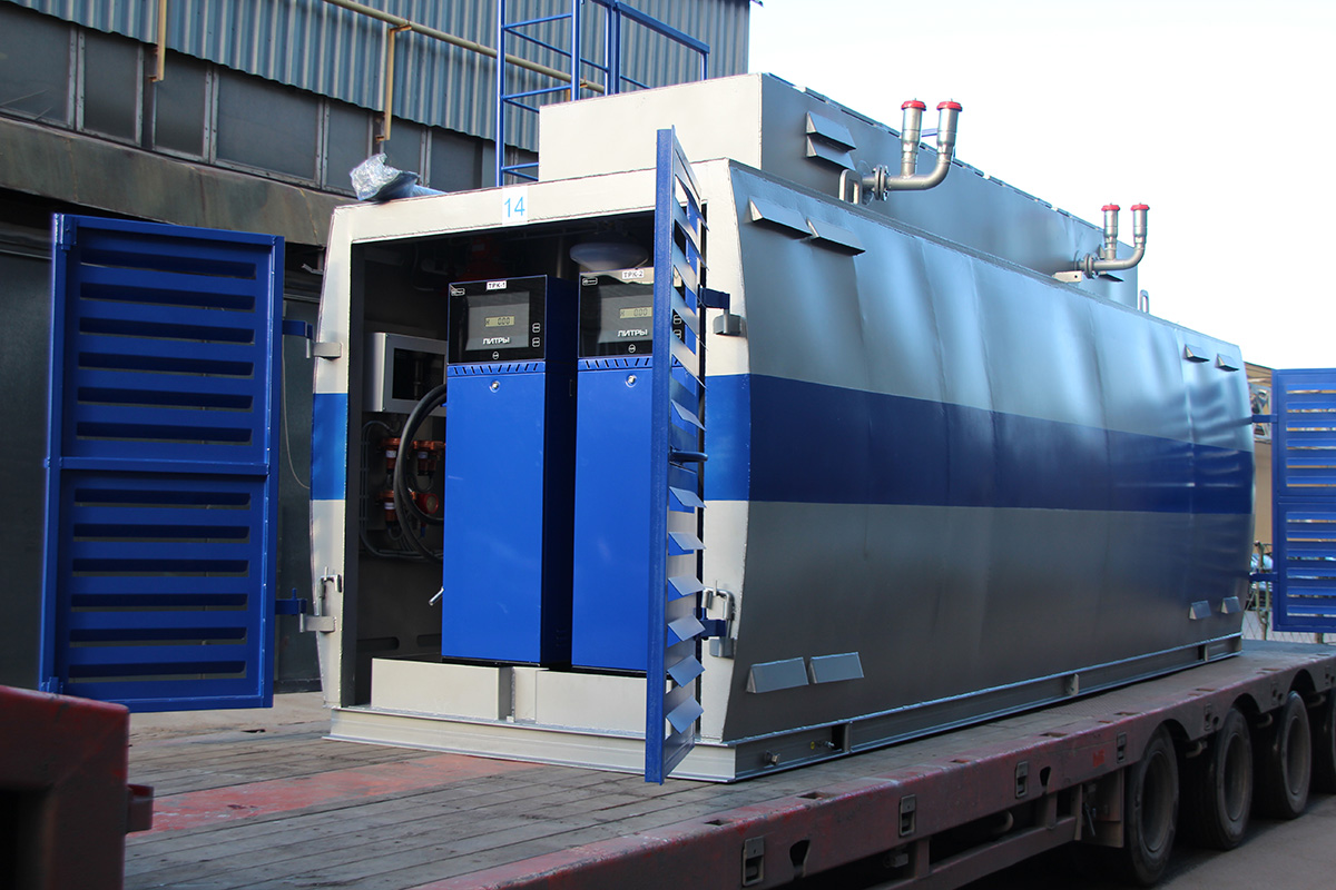 Еще одна сфера деятельности завода 122 ЭМЗ, которая может заинтересовать как крупный бизнес, так и мелкие предприятия - изготовление автозаправочных станций (АЗС). Отличительной особенностью этих АЗС является то, что они являются модулями контейнерного типа, что позволяет в кратчайшие сроки, без применения специальных строительных технологий осуществить монтаж и ввести в эксплуатацию АЗС с широким диапазоном оборота светлых нефтепродуктов.
